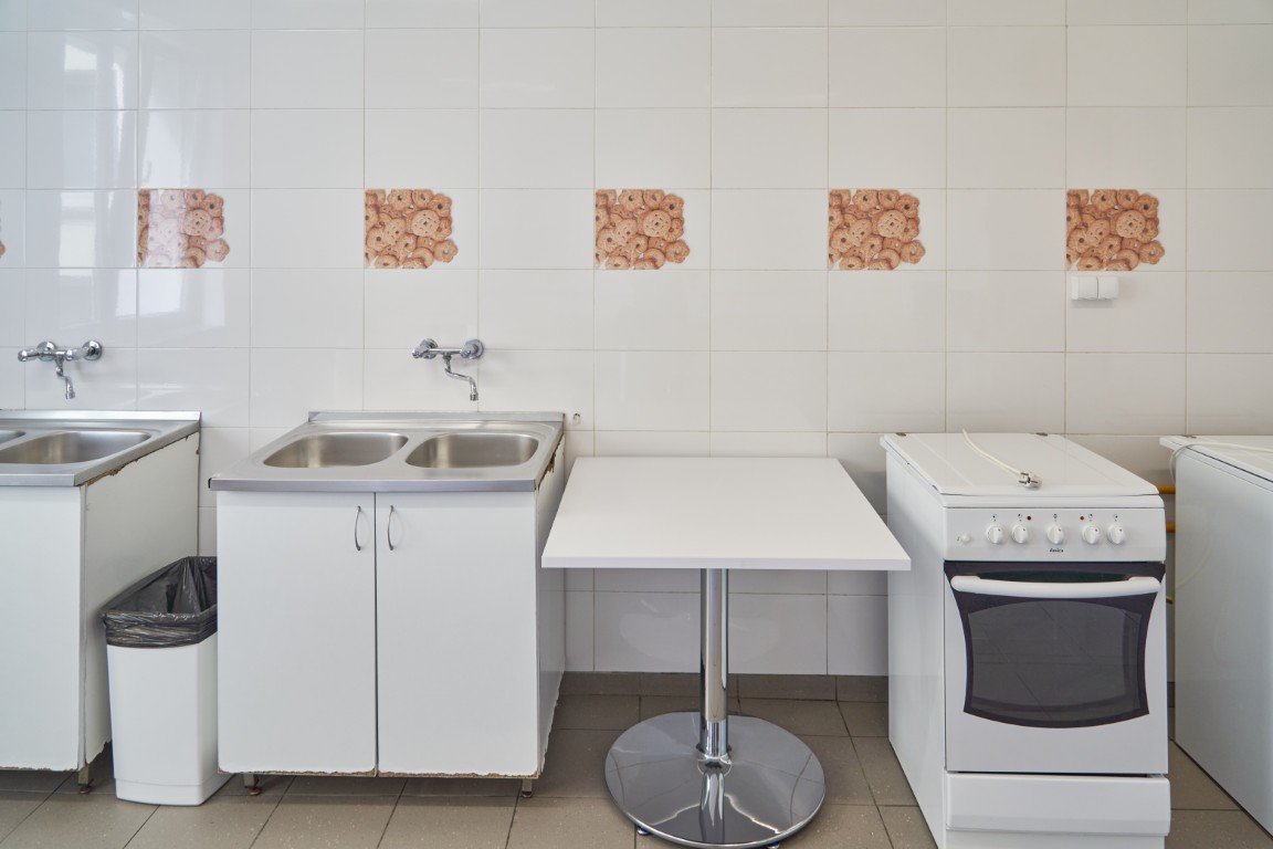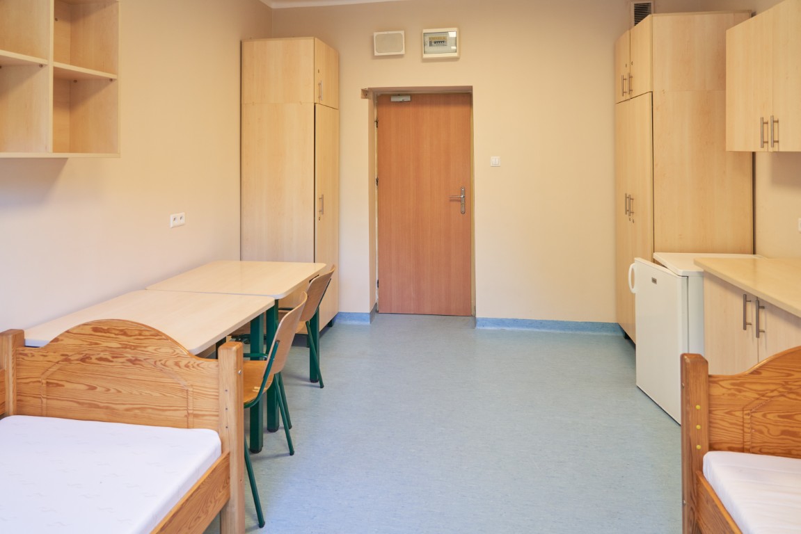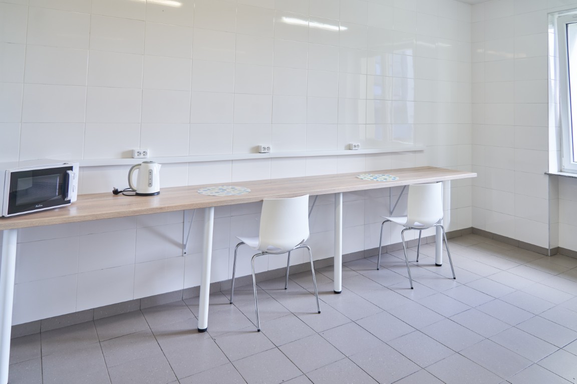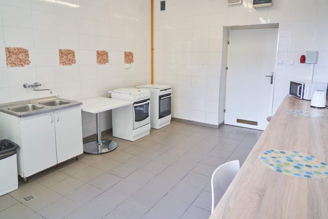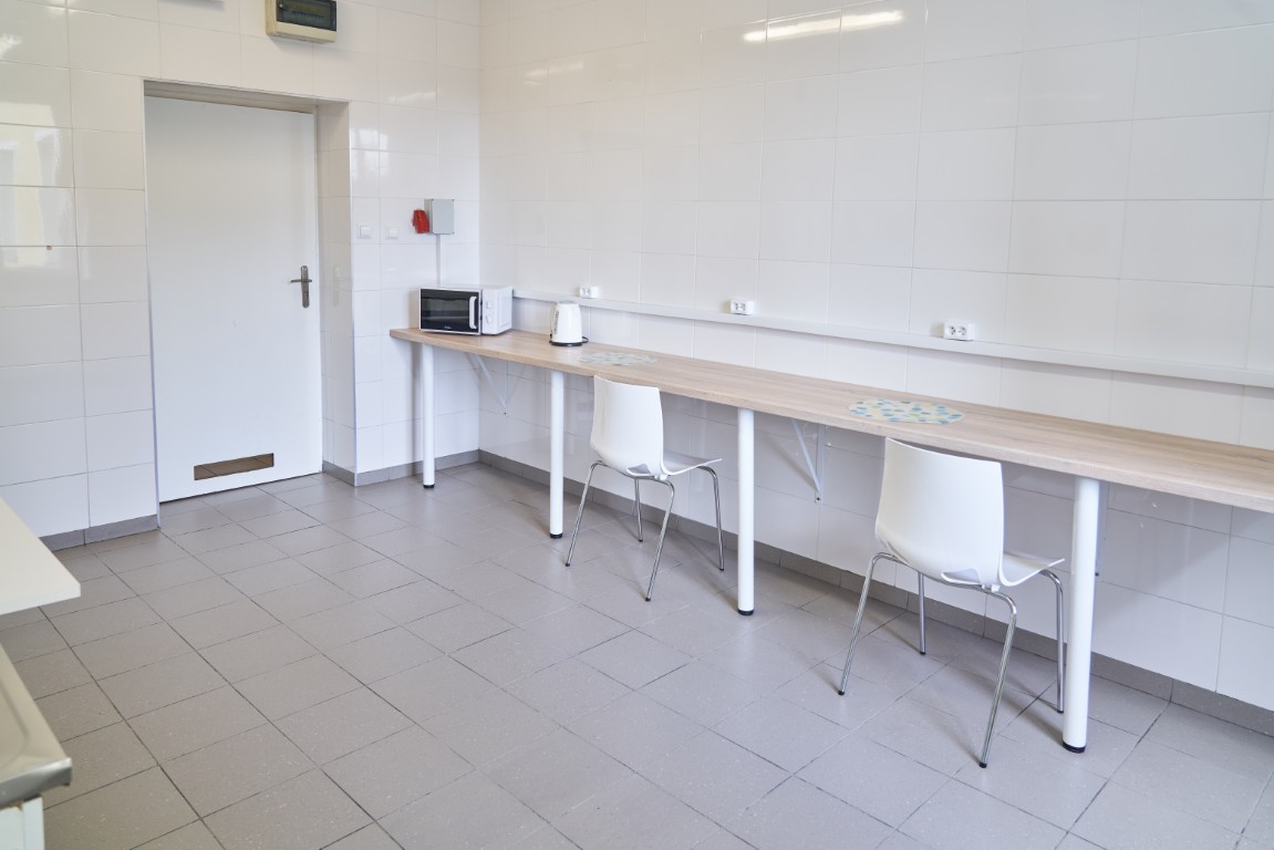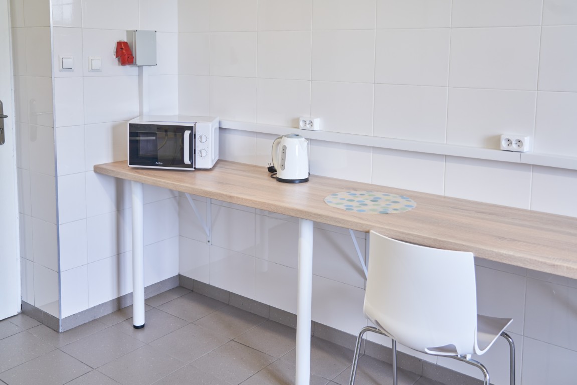 Na każdym piętrze znajdują się dwie wspólne łazienki, kuchnia (z czajnikiem i kuchenką mikrofalową), pralnia (wyposażona w dwie pralki, rozkładaną suszarkę, deskę do prasowania).