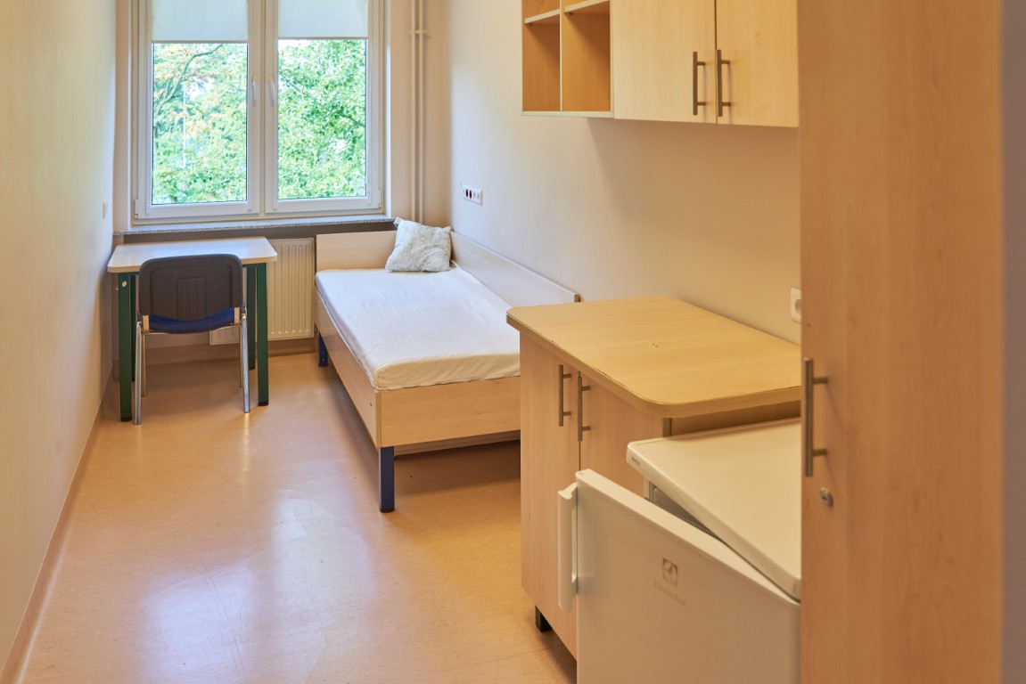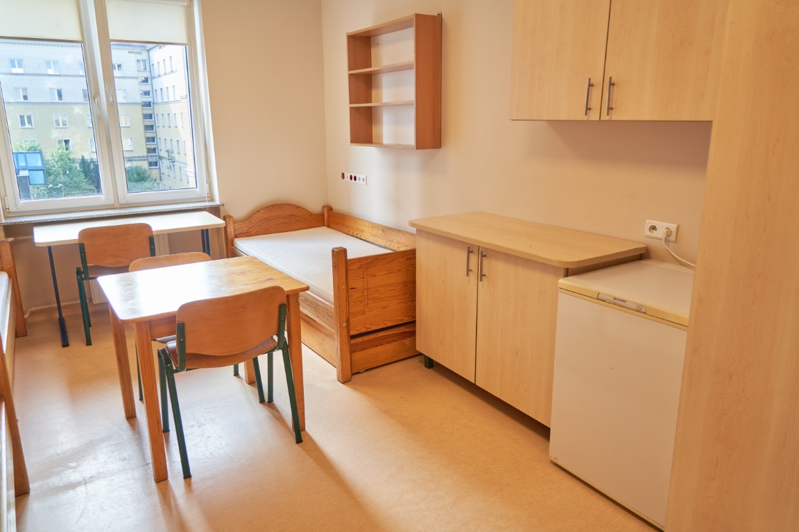 Dom Studenta „Mrowisko” to trzypiętrowy akademik, który oferuje 240 miejsc w pokojach dwu- oraz trzyosobowych. Pokoje są w pełni umeblowane, wyposażone w lodówki.