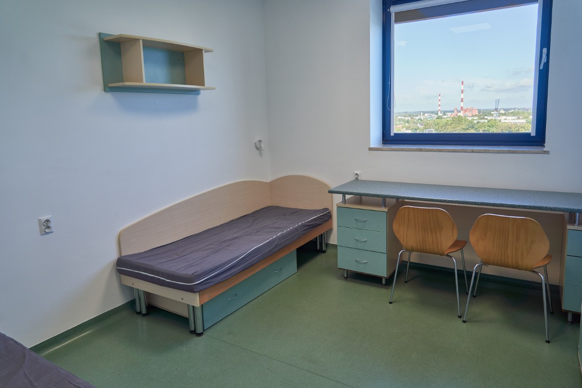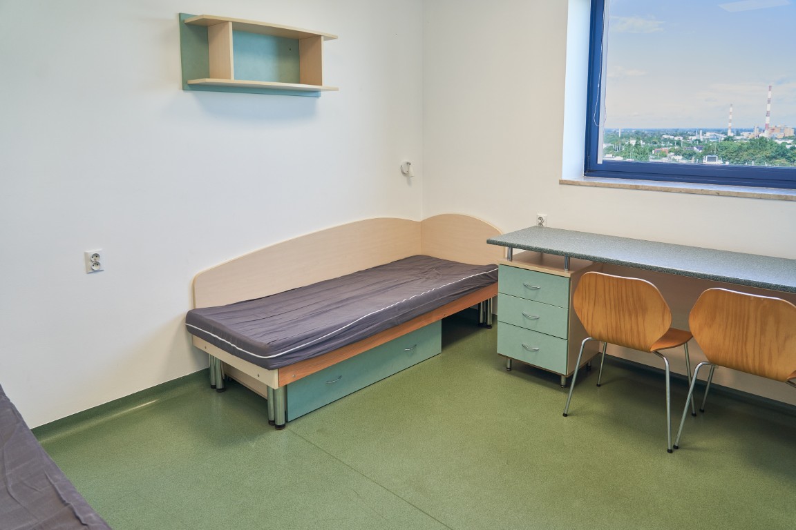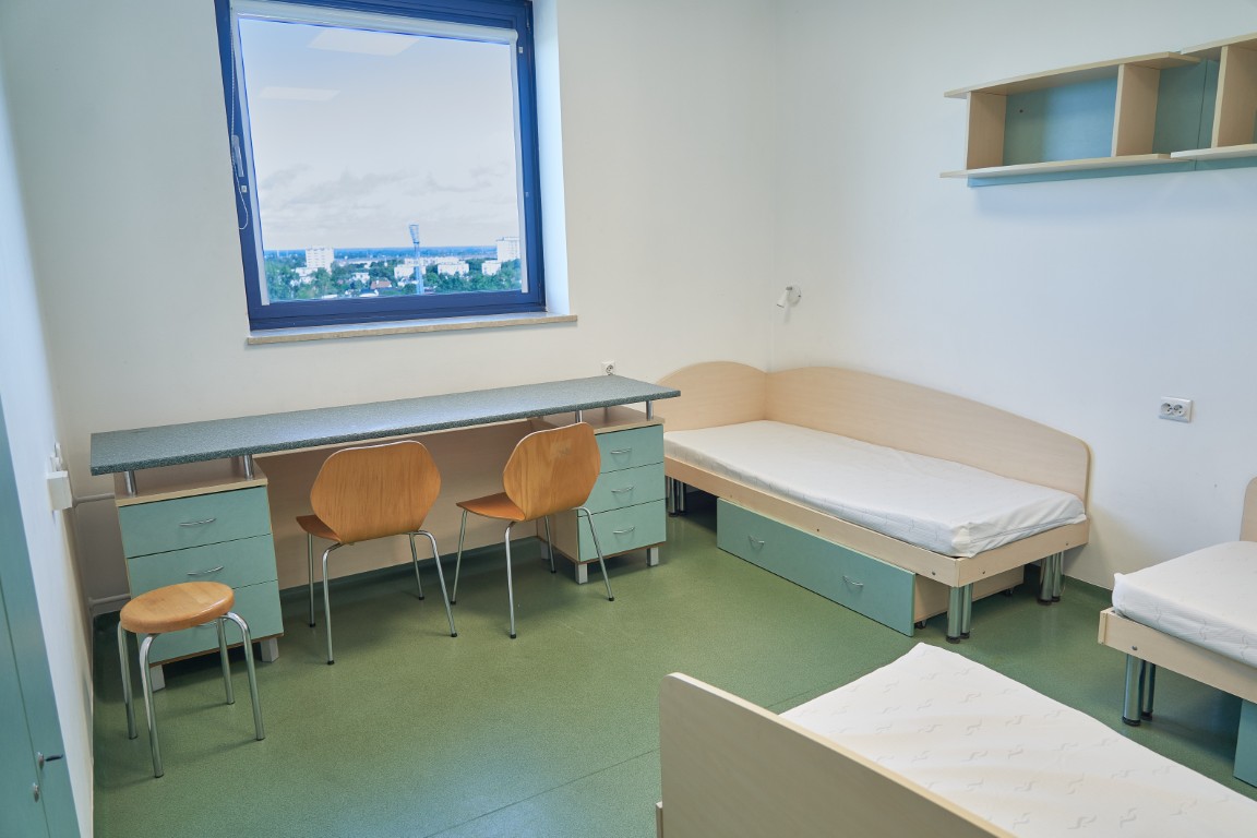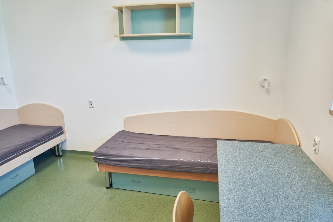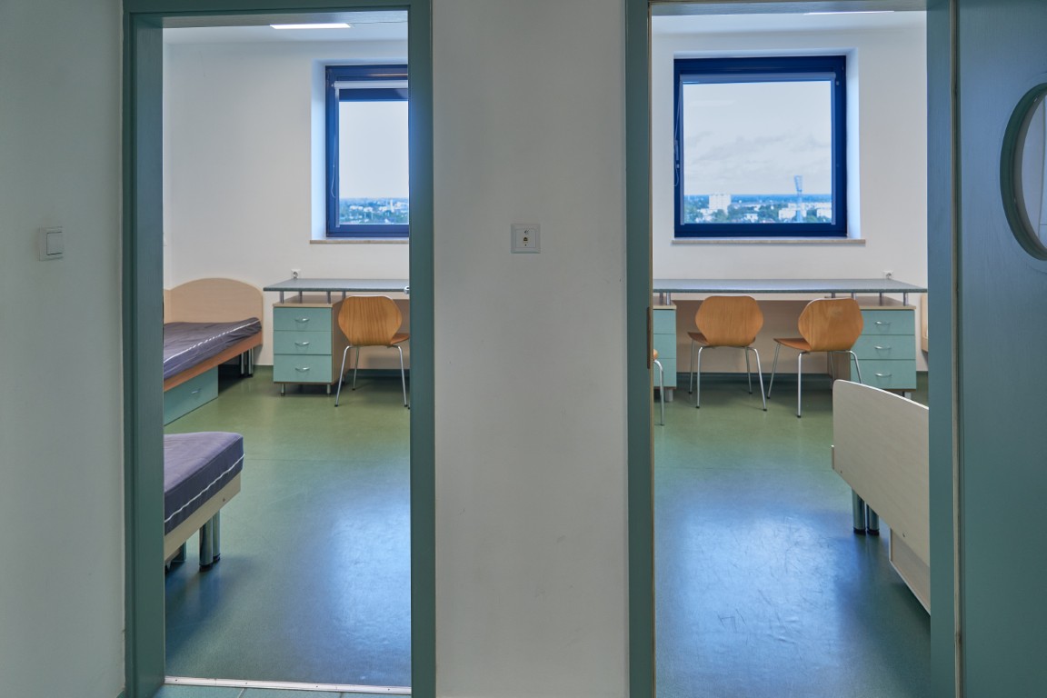 Na każdy moduł składa się  pokój dwu – i trzyosobowy. Wyjątek stanowi pierwsze piętro w całości przystosowane dla osób z niepełnosprawnościami – z pokojami wyłącznie dwuosobowymi oraz łazienkami ze specjalnie przystosowanymi sanitariatami, kabinami natryskowymi oraz umywalkami.