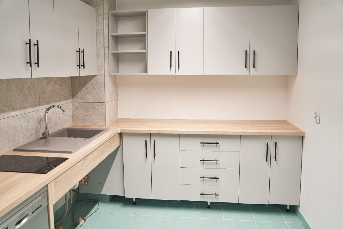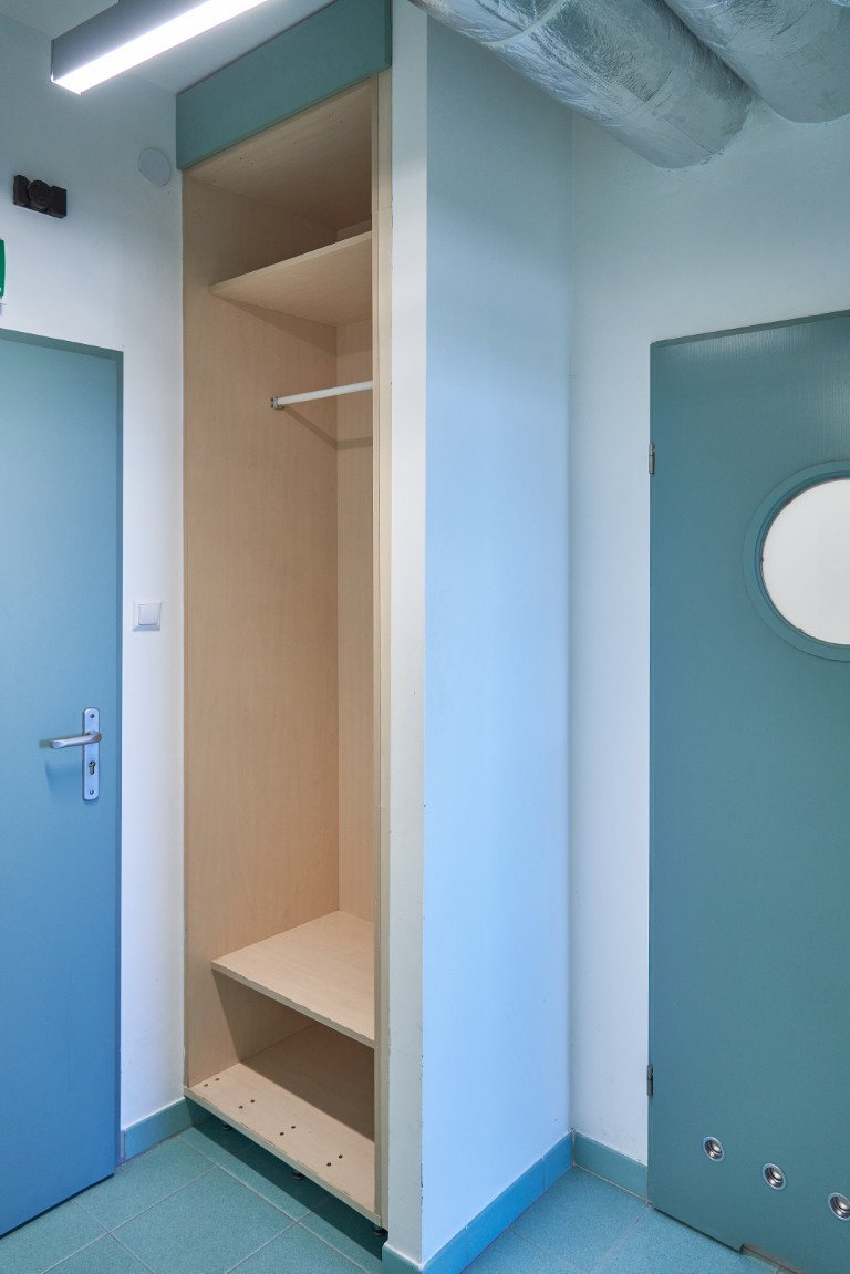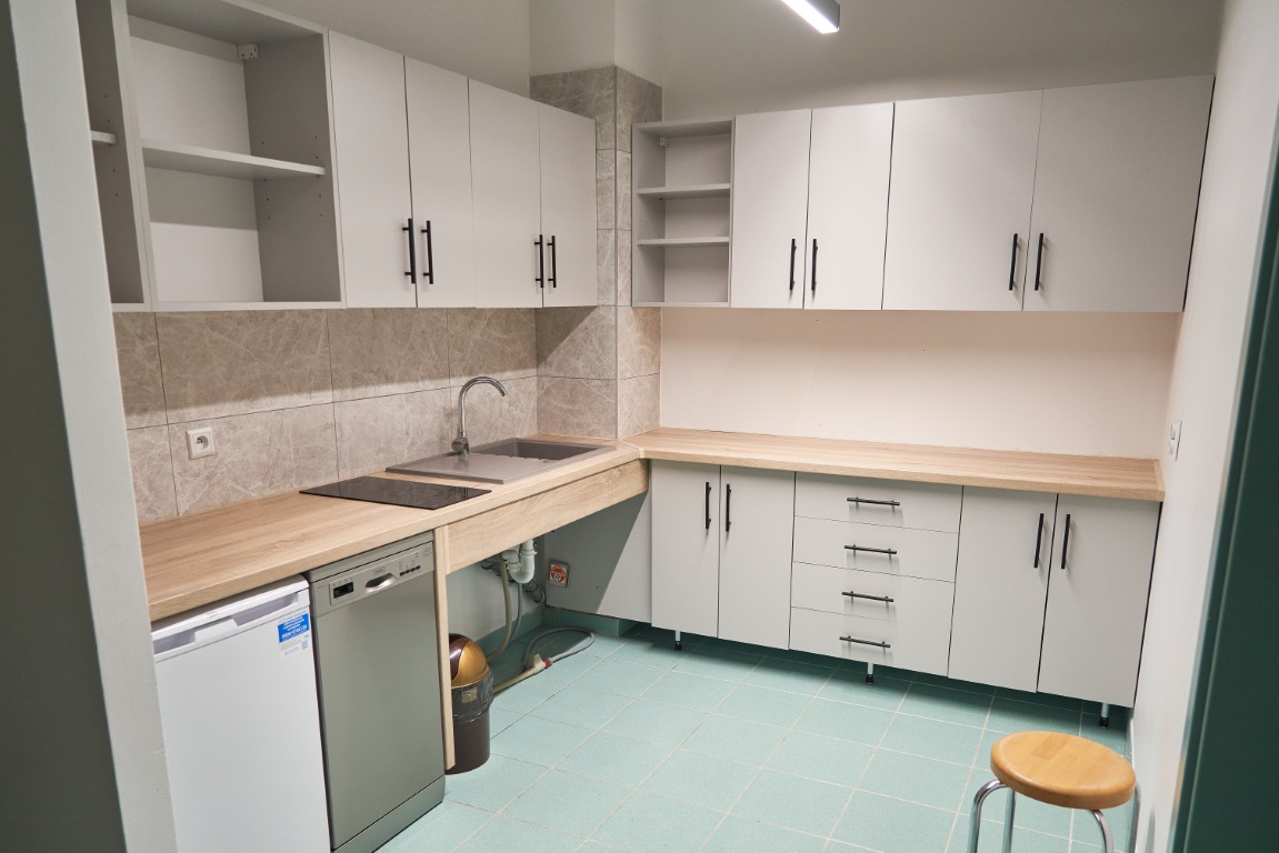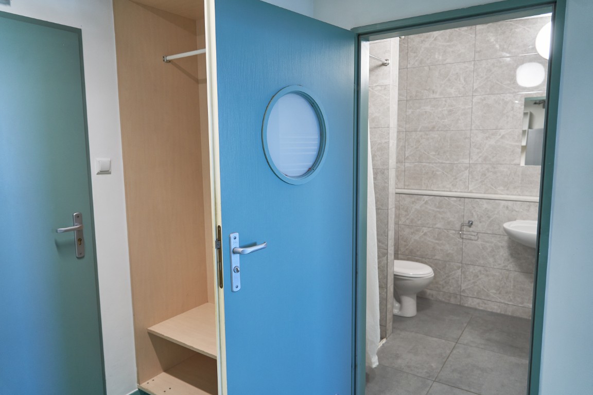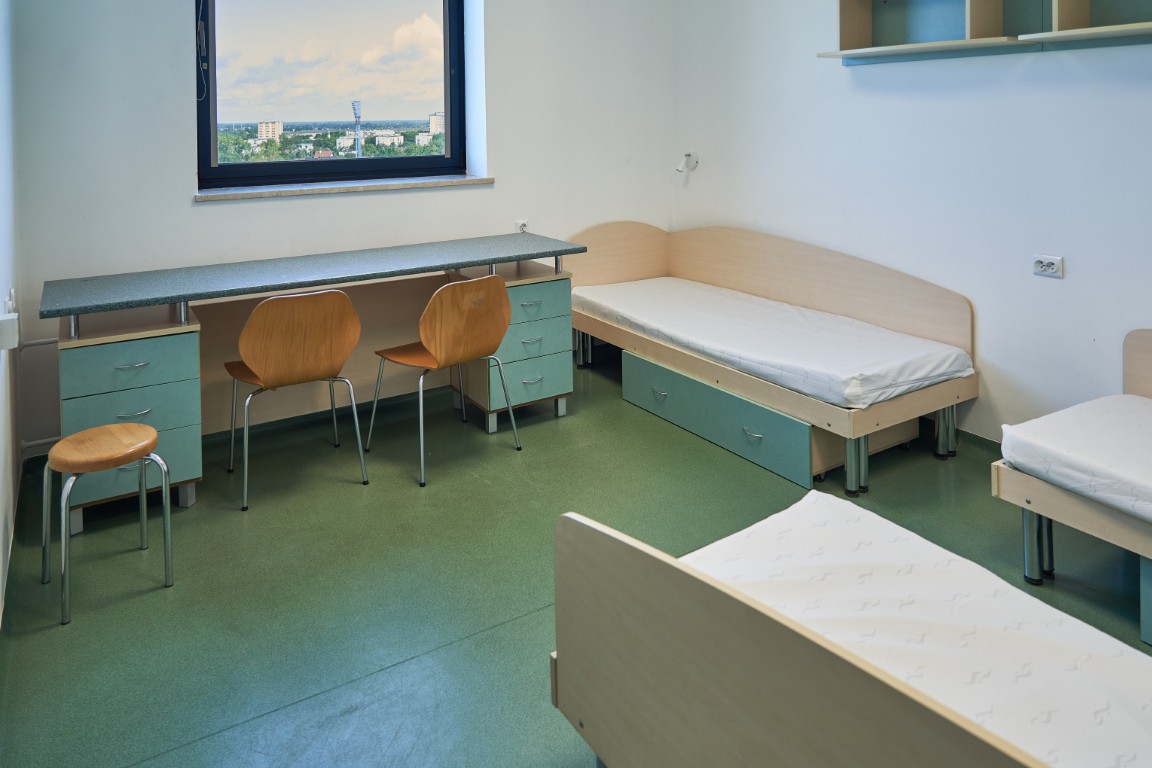 Na każdy moduł składa się  pokój dwu – i trzyosobowy. Wyjątek stanowi pierwsze piętro w całości przystosowane dla osób z niepełnosprawnościami – z pokojami wyłącznie dwuosobowymi oraz łazienkami ze specjalnie przystosowanymi sanitariatami, kabinami natryskowymi oraz umywalkami.